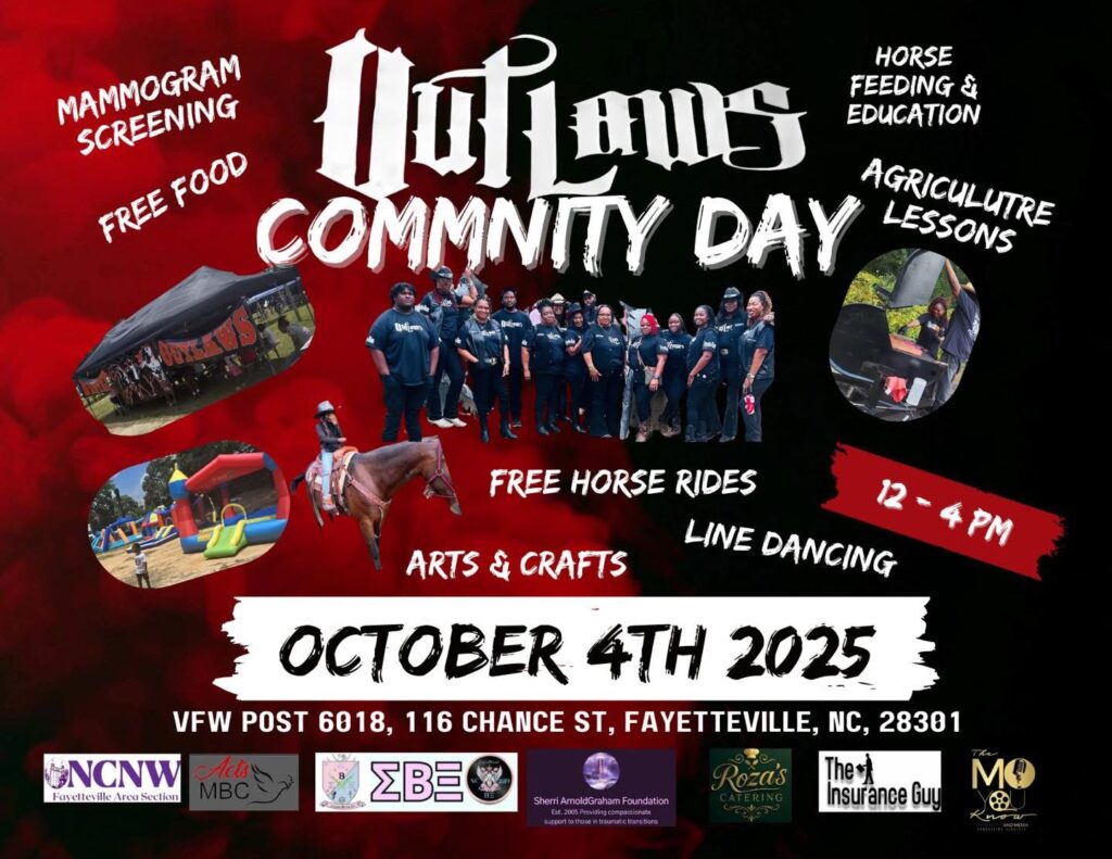 The Outlaw Horse Club, a long-standing pillar of Fayetteville’s horse riding community, announced today the return of its highly anticipated Outlaw Community Day. The event will be held on Saturday, October 4, 2025, from 12:00 p.m. to 4:00 p.m. at VFW Post 6018, 116 Chance Street, Fayetteville, NC 28301.